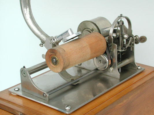 Einmalig ist der Holz-Zylinder für die Phonographen-Walze
