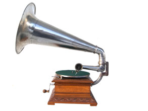 Das Kaléophone Markenzeichen mit seiner Adresse in Paris / The Kaléophone trade marke Typisch: die Kurbel an der Front des Gehäuses  / Typical: the crank is mounted on the front of the case